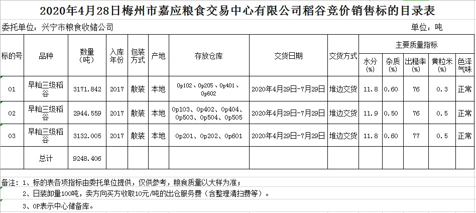 受客戶委托,梅州市嘉應(yīng)糧食交易中心有限公司定于2020年4月28日(星期二)舉辦糧食競價(jià)交易會,興寧市糧食收儲公司擬銷售2017年早秈稻9248.406噸。