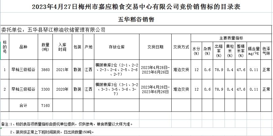 文件下載:2023年4月27日五華縣琴江糧油收儲管理有限公司稻谷銷售