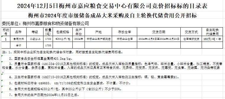 梅州市2024年度市級(jí)儲(chǔ)備成品大米采購(gòu)及自主輪換代儲(chǔ)費(fèi)用公開招標(biāo)公告