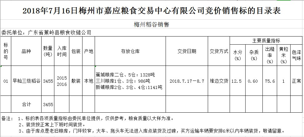 交易時(shí)間和地點(diǎn):2018年7月16日(星期一)上午10時(shí)。廣東省梅州市彬芳大道南161號梅州市糧食交易中心3樓。